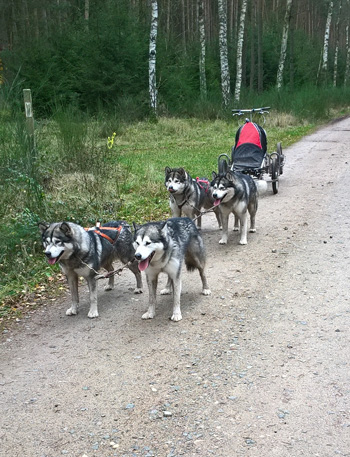 Mit zwei schnellen Hunden kann man Spitzengeschwindigkeiten von über 40 km/h erreichen, da vibriert schon mal der Lenker und gute Bremsen sind gefragt.